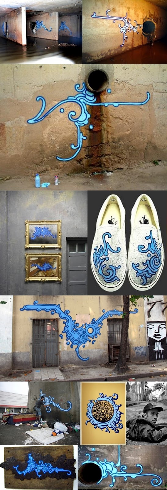 Já pensou em passar por um boeiro, que virou galeria de arte? É assim que trabalha o grafiteiro Zezão, transformando galeria de esgoto, no local onde ele expõe suas obras. Sujo, feio e fedido, o ambiente poderia ser palco de nada, mas creio que o Zezão encontrou nisso, uma forma de mostrar seu trabalho, de fugir do óbvio, e de alertar a sociedade a respeito do descaso com sua cidade, tanto por parte do governo, quanto por parte da população.