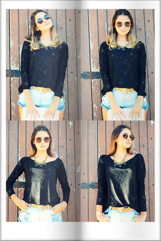 Estou completamente apaixonada por esse short. Detonado, folgado e estilosinho. ADORO! A blusa preta fechou mais a produção, e tentou deixá-la menos noturna, mas não sei se obteve êxito, haha. E aí, só joguei os acessórios que deixam tudo menos básico… Cinto, colar, óculos, clutch. E nos pés, a boa e nova sapatilha. Mais uma que vocês vão ver demais por aqui, garanto! E aí, gostaram? Usariam? Me contem tudo!