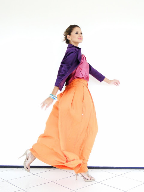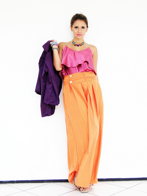 O look abaixo mostra o bom e velho color blocking, em uma proposta mais chic. Essas peças, obviamente, podem ser usadas separadamente para compor vários outros estilos. Laranja é a cor do verão e eu quis optar por peças com cores bem vibrantes. Aqui no Ceará sempre tá calor, e um look desse só poderá ser usado em um ambiente climatizado, mas o blazer poderá casar bem também com um shortinho jeans e uma blusinha básica. A saia longa pode ser usada em diversos lugares e ocasiões. Mas o mais importante á versatilidade do look.